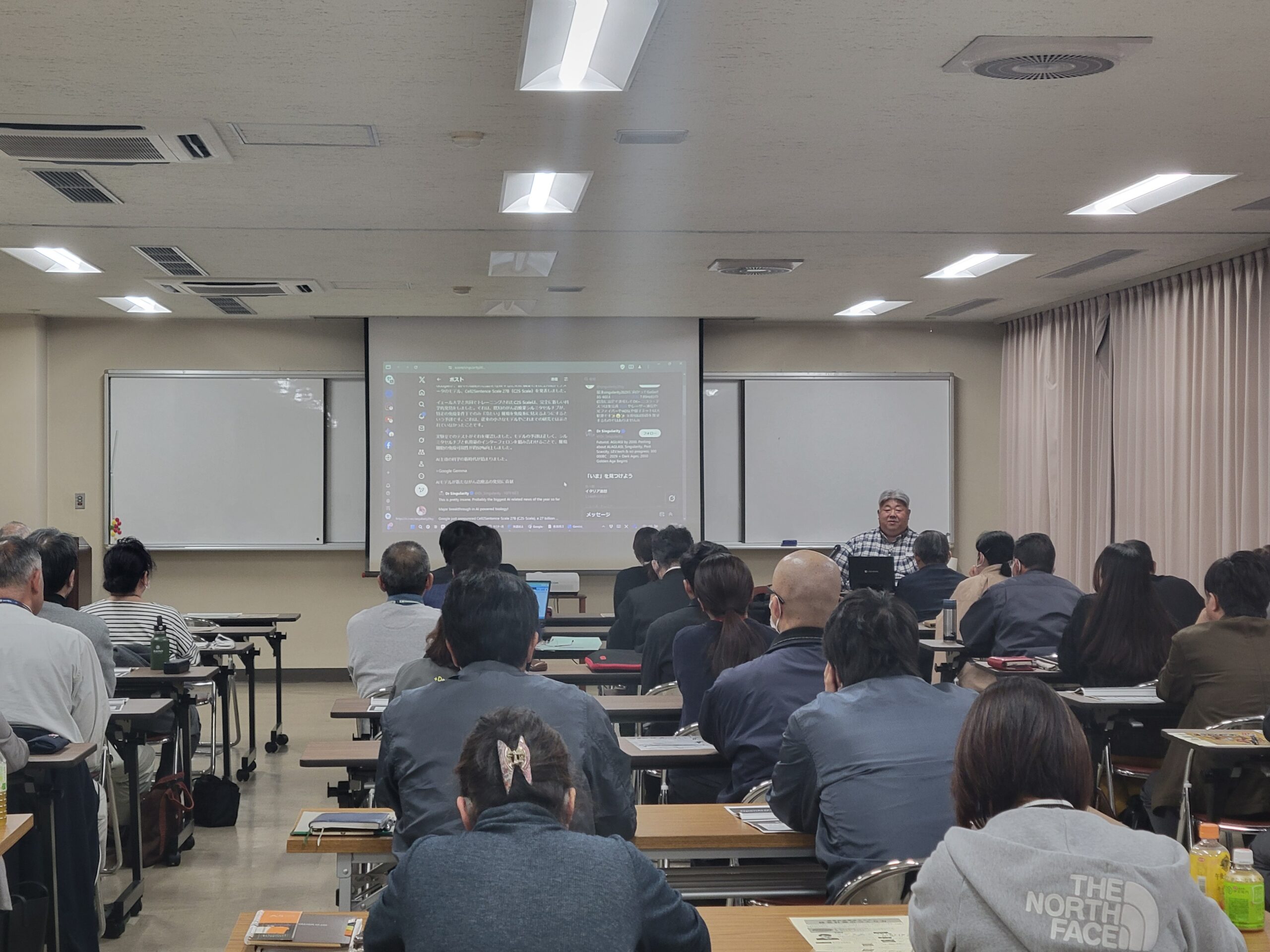 生成AI活用セミナーを開催致しました 令和7年11月21日(金)に当所3階にて生成AI活用セミナーを開催致しました。 定員を超える申し込みがあり、日々進化する生成AIの現状と事業における活用手法について解説頂きました。