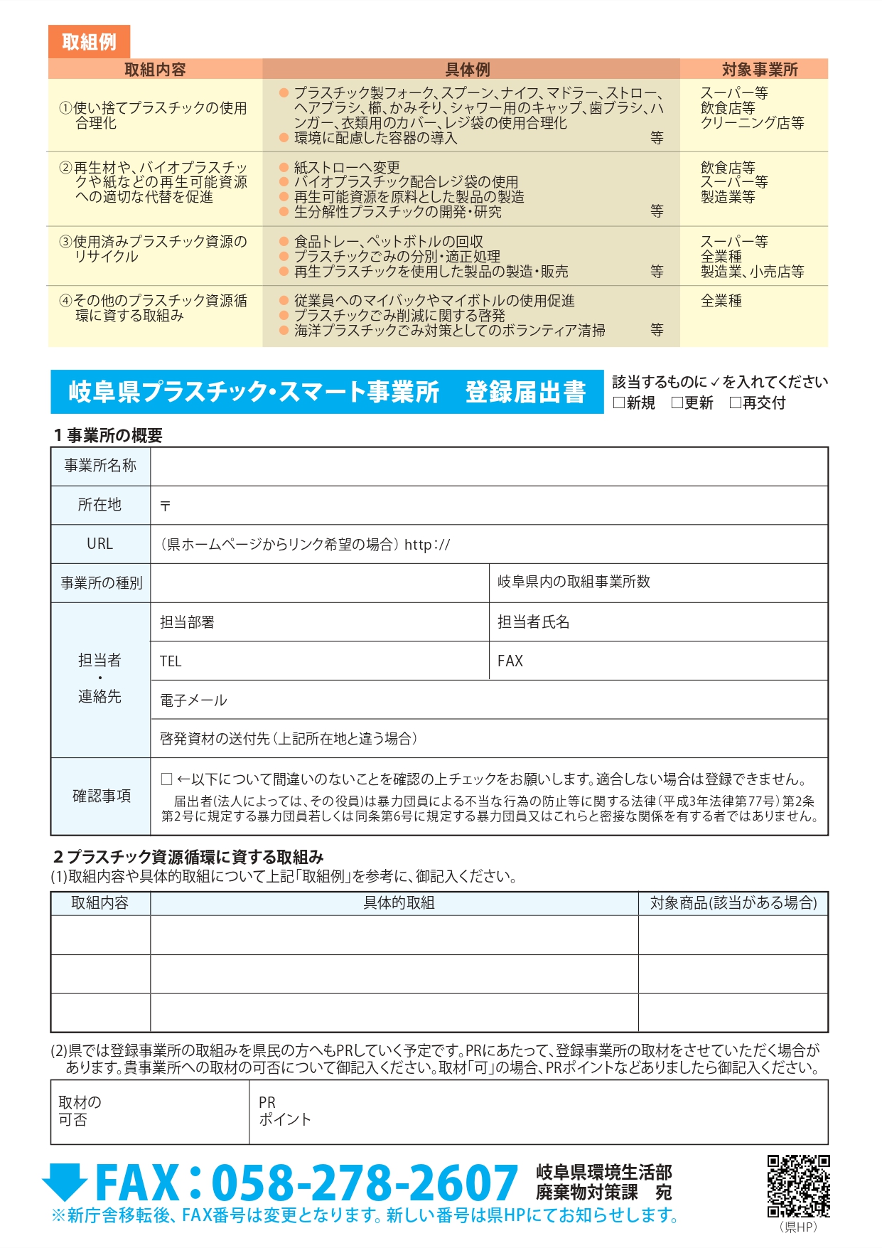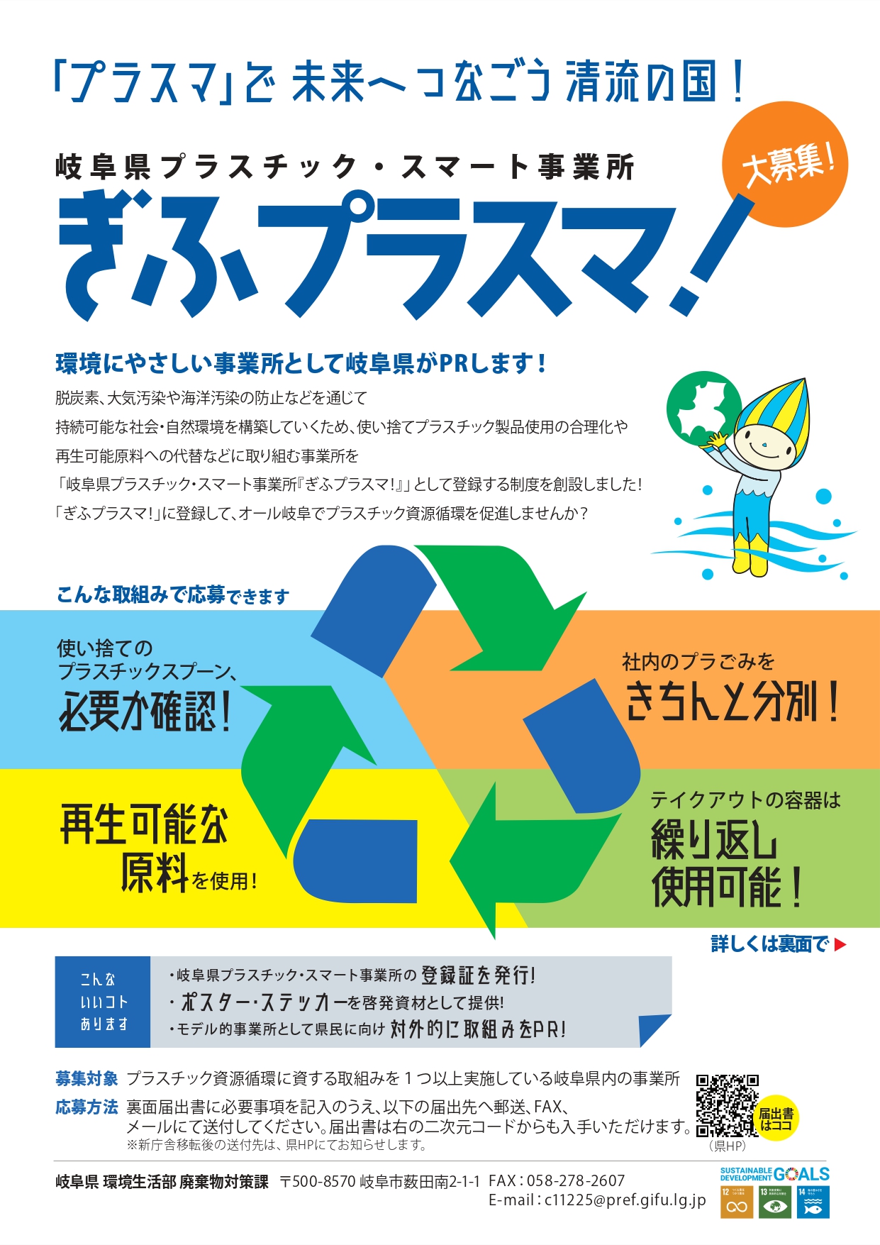 【ニュース】「岐阜県プラスチック・スマート事業所『ぎふプラスマ!』」の募集について