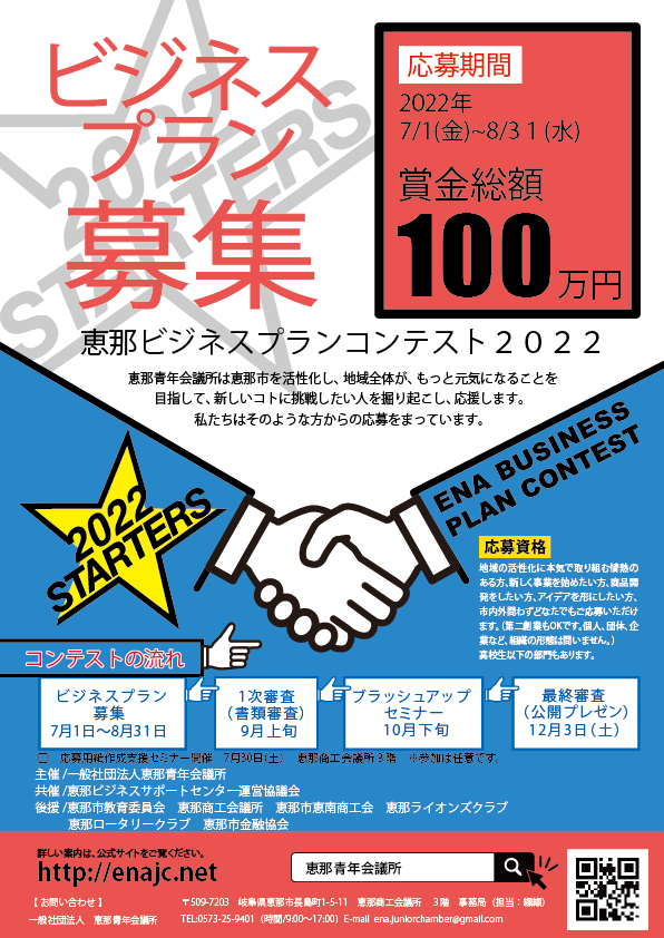 【イベント情報】STARTERS恵那ビジネスプランコンテストが開催されます