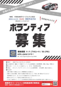 【イベント情報】「フォーラムエイト・ラリージャパン2022」のボランティアを募集しています