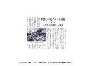 【会議所情報】当所が参画するWRCイベントが日商の「会議所ニュース」に掲載されました 恵那商工会議所が参画する「恵那市ラリージャパン活用推進実行委員会」による世界ラリー選手権(WRC)を活用したまちおこしイベントの様子が日本商工会議所が発行する「会議所ニュース」に掲載されました。
